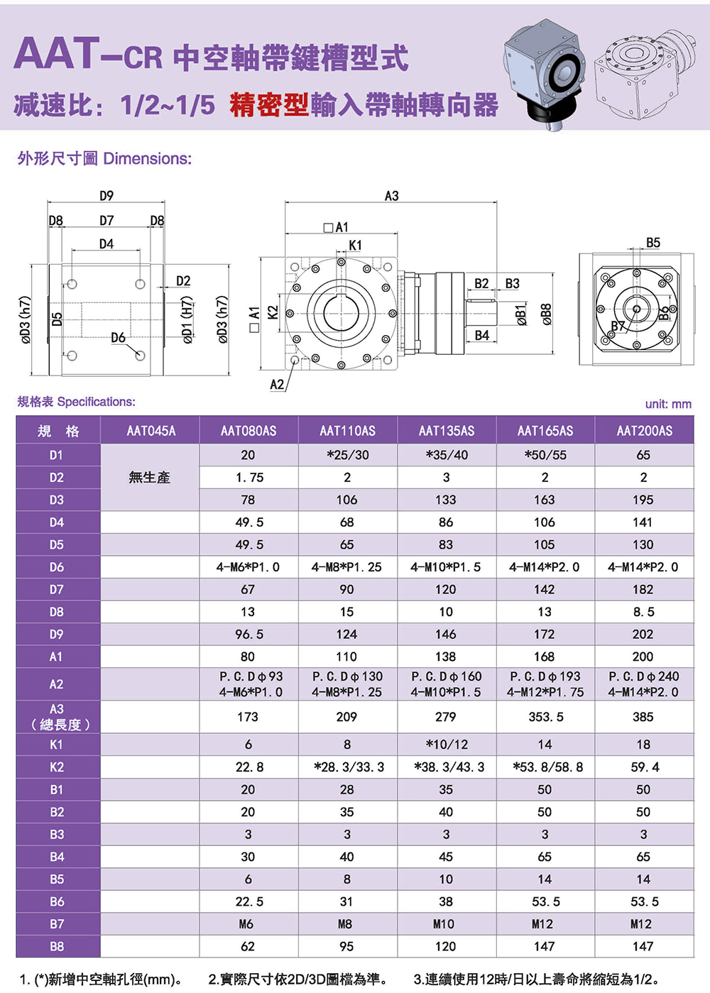 AAT-CR中空軸帶鍵槽型式 精密型輸入帶軸轉向器