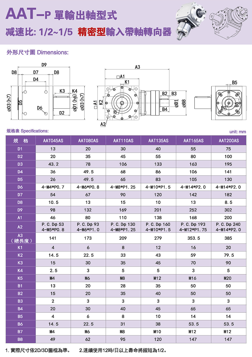 多樣化:輸出軸種類多樣化,有單出力軸型、雙出力軸型、中空軸型、中空法蘭型、中空軸錐形緊迫性、螺桿直線型、螺牙直線型。