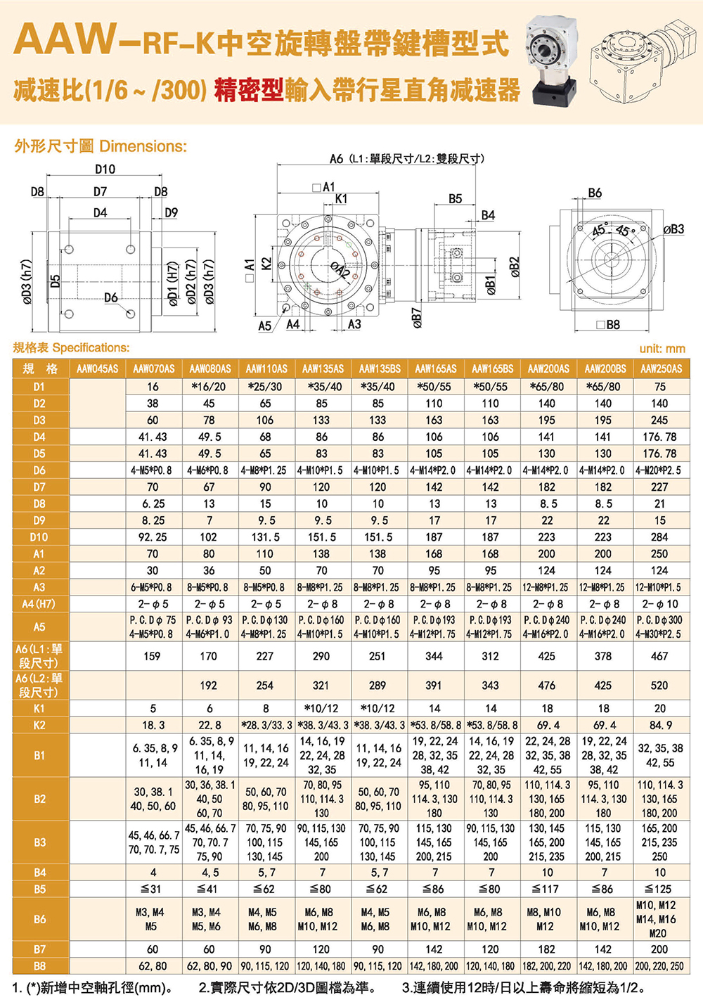 AAW-RF-K大中空旋轉(zhuǎn)盤帶鍵槽型式 精密型輸入帶行星直角減速器