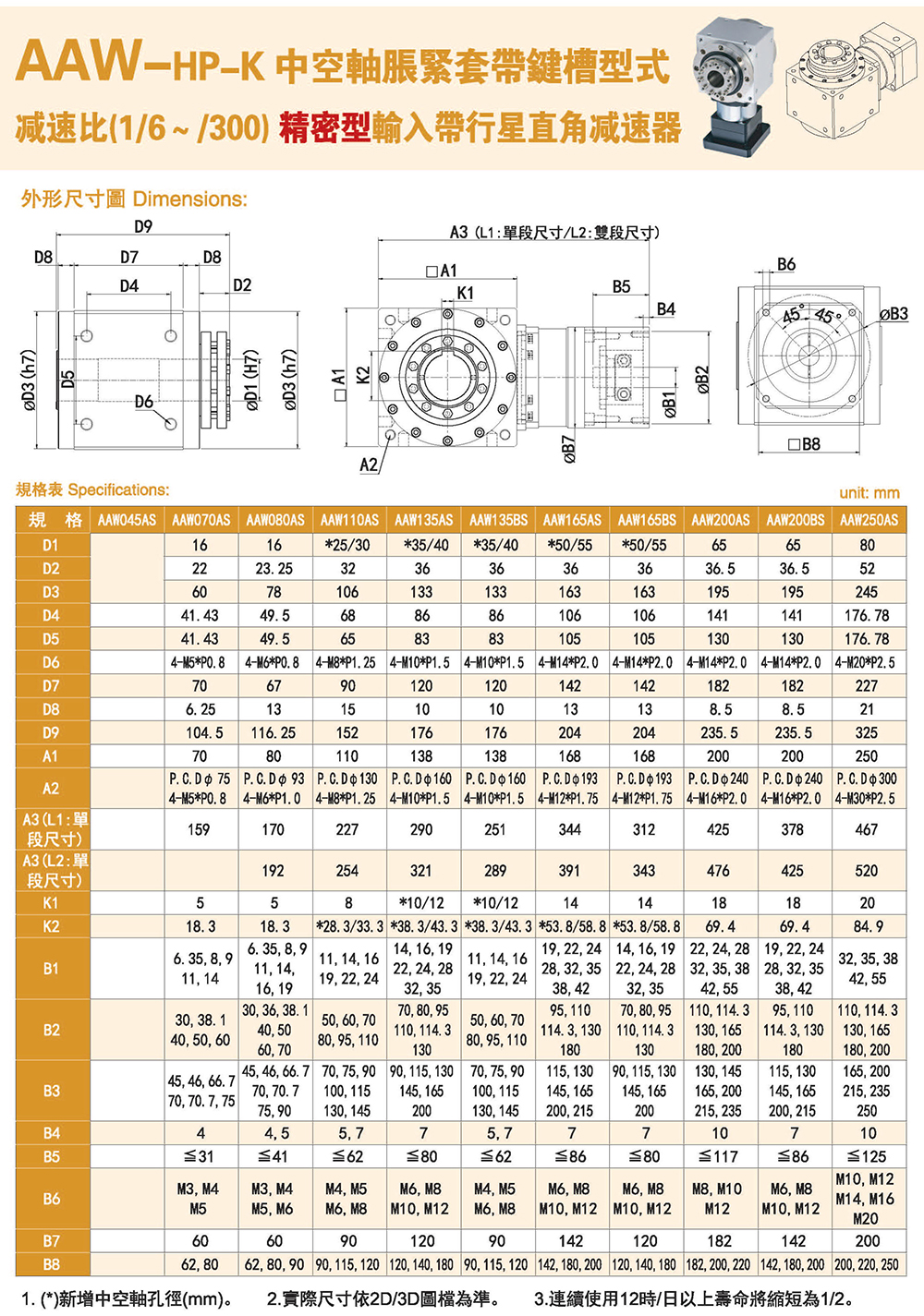 多樣化:輸出軸種類(lèi)多樣化,有單出力軸型、雙出力軸型、中空軸型、中空法蘭型、中空軸錐形緊迫性、螺桿直線型、螺牙直線型。