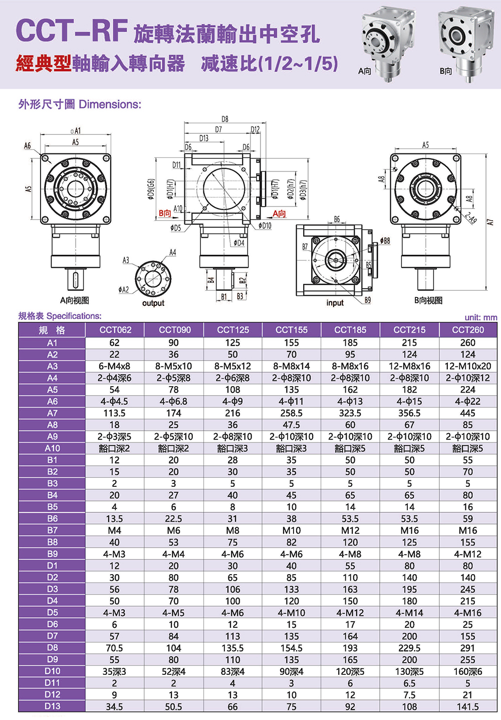 多樣化:輸出軸種類多樣化,有單出力軸型、雙出力軸型、中空軸型、中空法蘭型、中空軸錐形緊迫性、螺桿直線型、螺牙直線型。