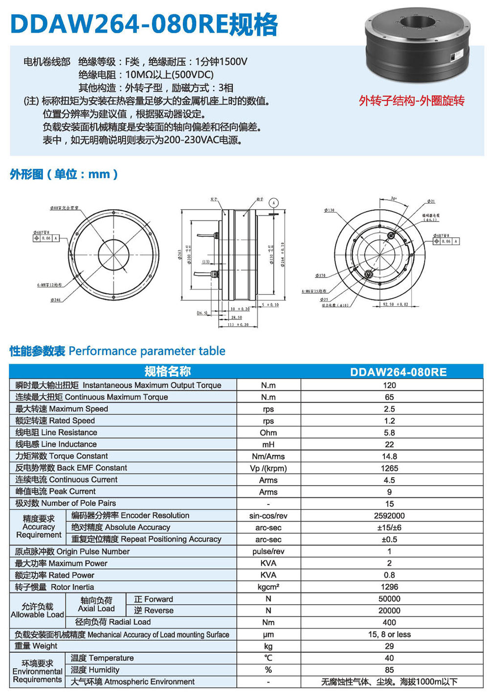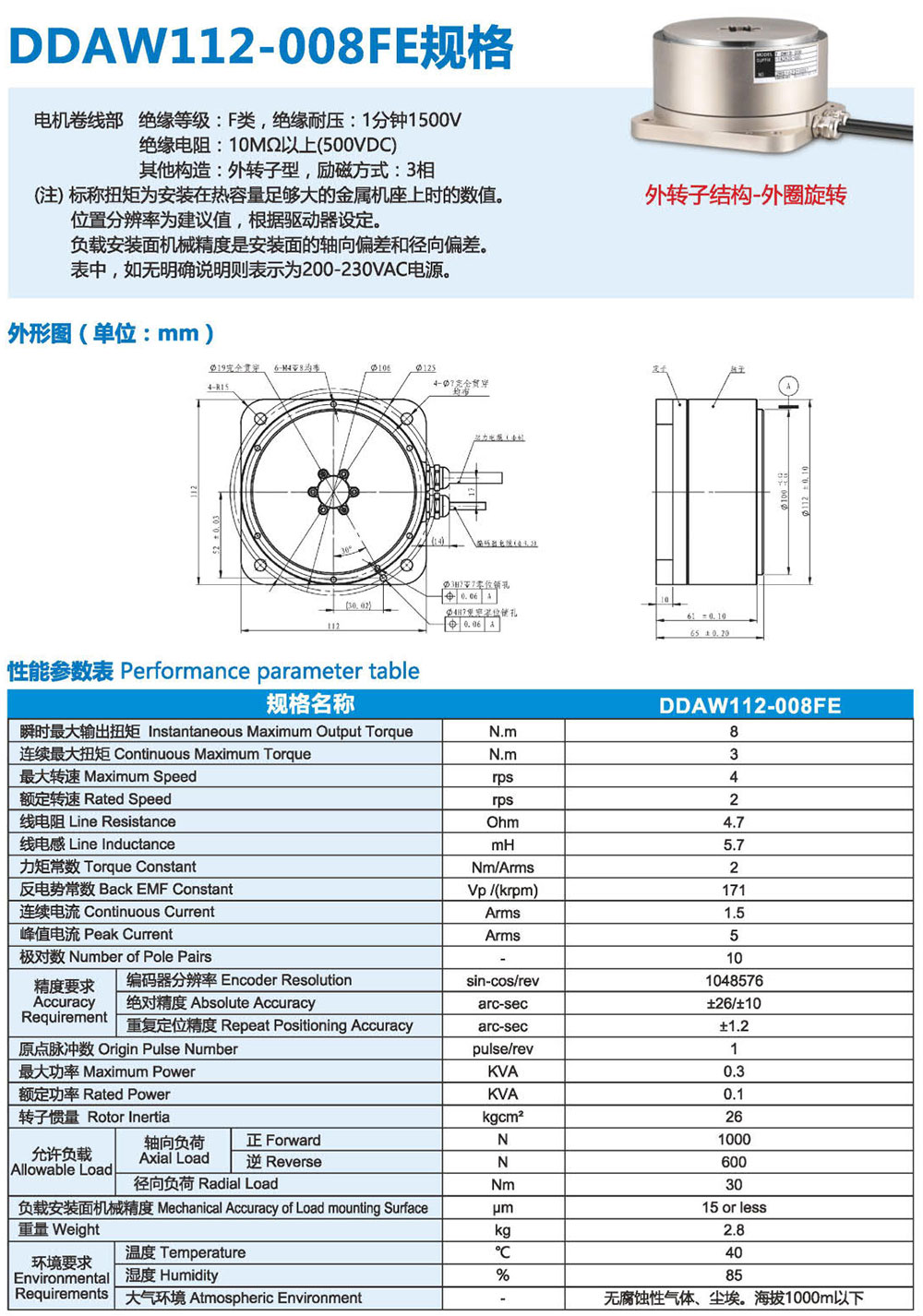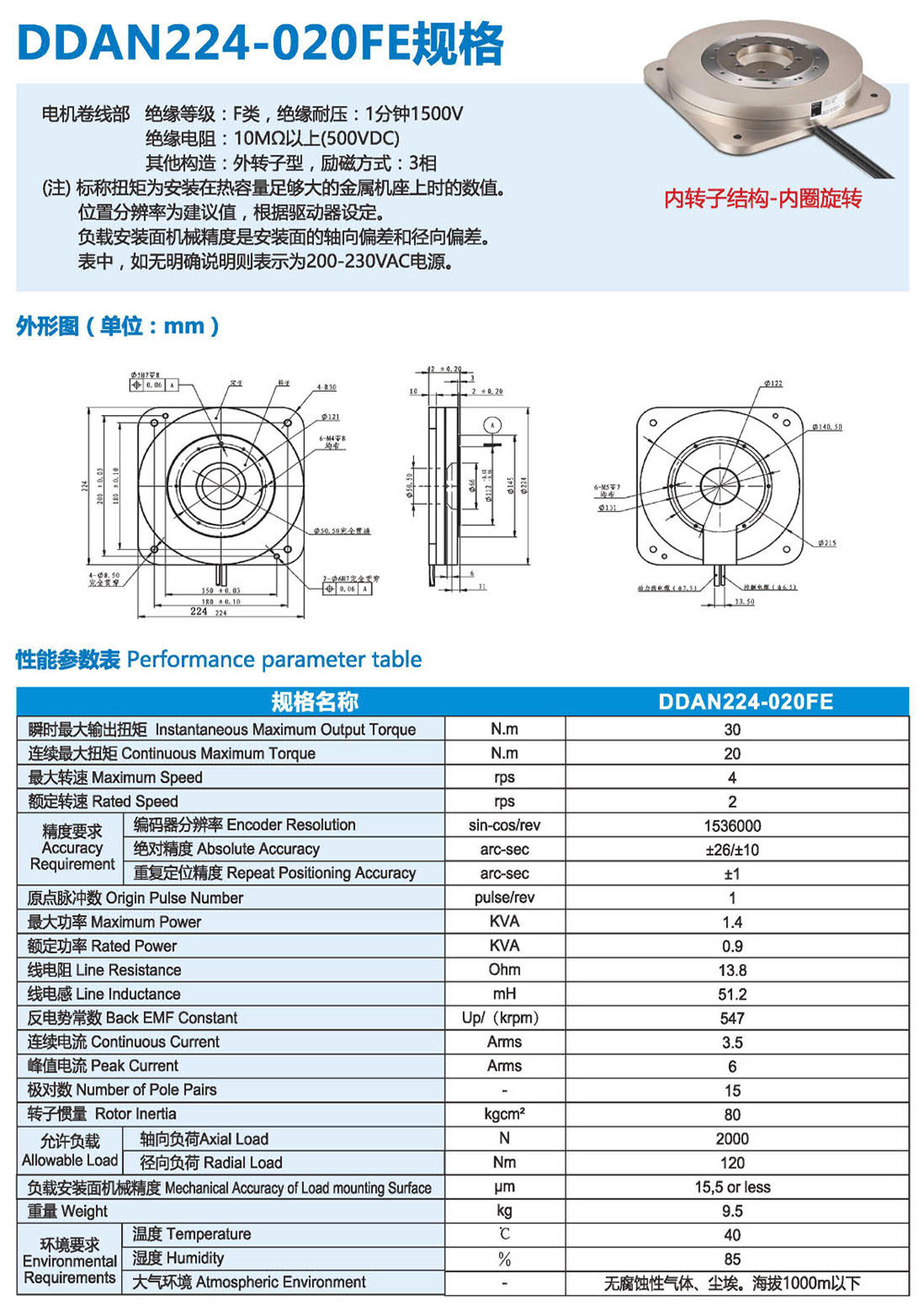 3F系列DD馬達,有內(nèi)轉(zhuǎn)子和外轉(zhuǎn)子兩種結(jié)構類 型來滿足更多應用需求。直徑從60mm- 490mm、 連續(xù)扭矩從1-1200N.m有十幾個大小可選規(guī)格, 精度可達+10arc-sec,重復定位精度可達 +0.5arc-sec。具有高精度、高剛性、低軸向徑向 跳動等優(yōu)點,被廣泛應用于半導體生產(chǎn)設備、光 媒體、光學對位、定位檢測、精密數(shù)控機床、汽 車裝配/檢測、液晶制造設備、屏幕貼合設備、鋰 電池制造設備、高端絲印設備及醫(yī)療器械等微精 密高端制造業(yè)領域。