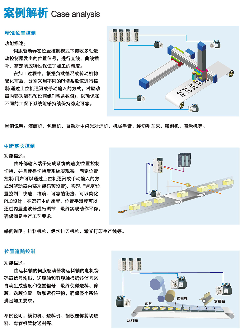 伺服驅(qū)動器在位置控制模式下接收多軸運動控制器發(fā)出的位置信號,進行直線、曲線插補,高速響應(yīng)特性保證了加工的精度。