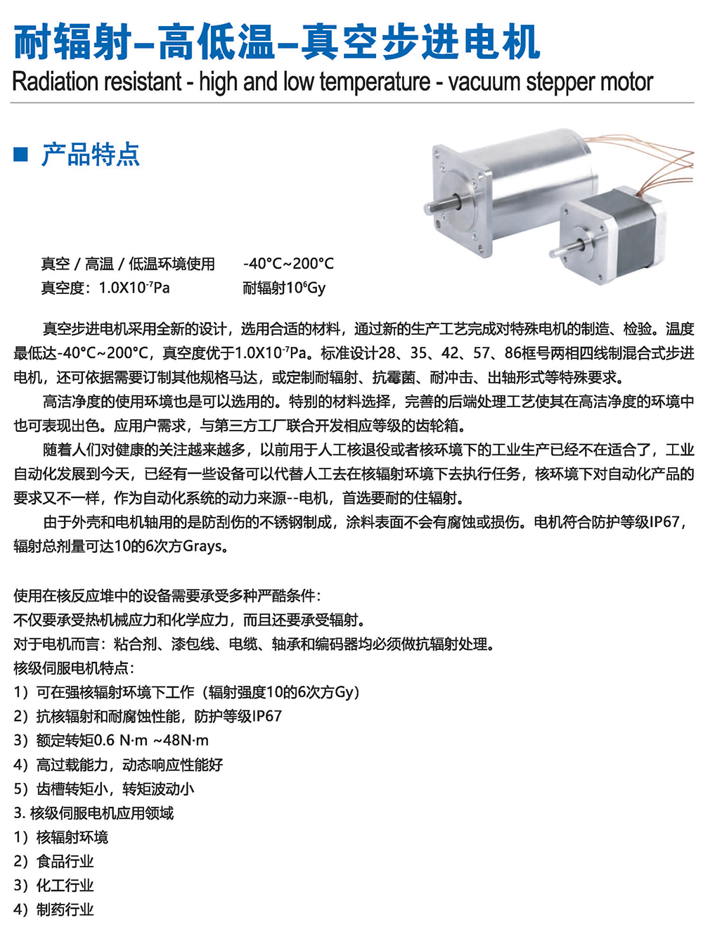 使用在核反應堆中的設備需要承受多種嚴酷條件:不僅要承受熱機械應力和化學應力,而且還要承受輻射。對于電機而言:粘合劑、漆包線、電纜、軸承和編碼器均必須做抗輻射處理。