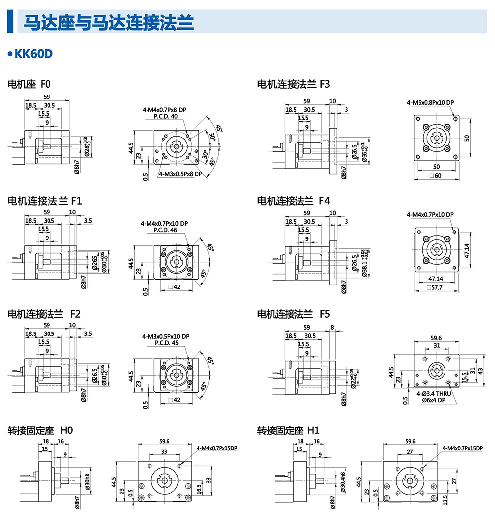 多樣化:輸出軸種類多樣化,有單出力軸型、雙出力軸型、中空軸型、中空法蘭型、中空軸錐形緊迫性、螺桿直線型、螺牙直線型。