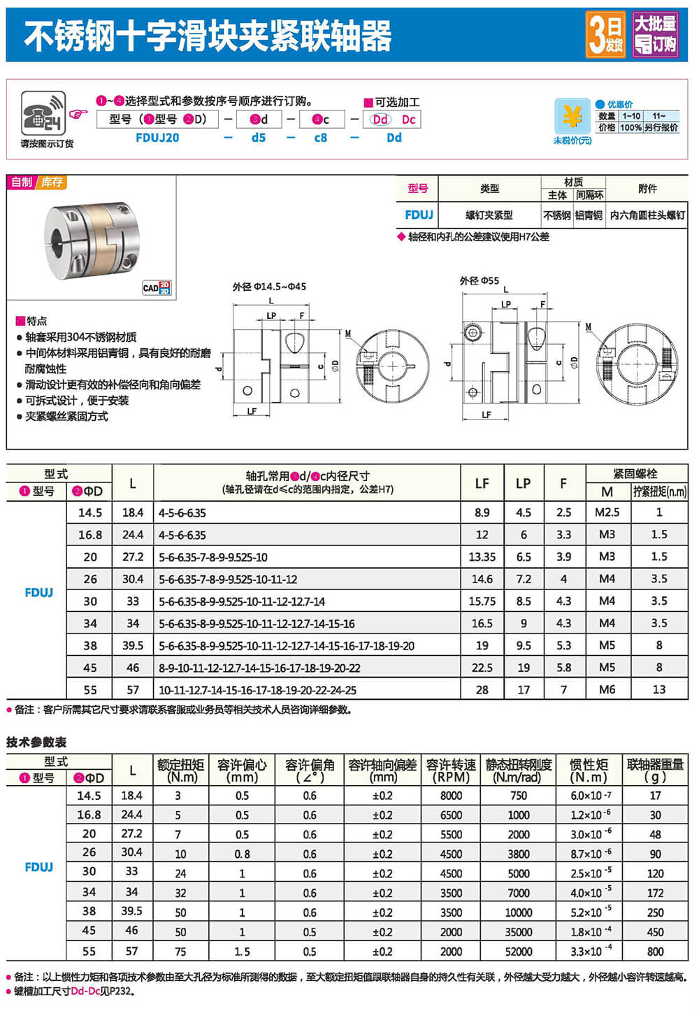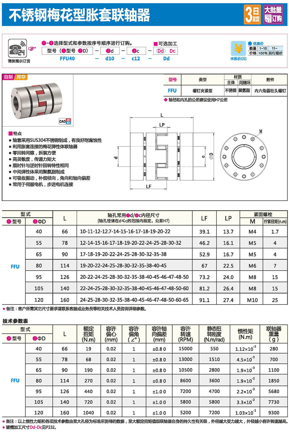 聯軸器是連接2個不同的旋轉體(電機軸,滾珠絲杠等),并以傳遞扭矩為目的的零件。通過吸收旋轉體間發(fā)生的軸心偏差(偏心.偏角.軸向振幅)減輕組裝調整的難度。并在發(fā)生意外過負載時,聯軸器首先損壞、解除旋轉體之間的連接,以保護昂貴的動力部及裝置整體。