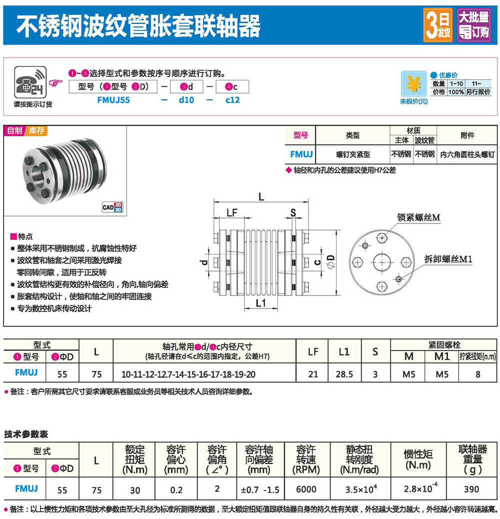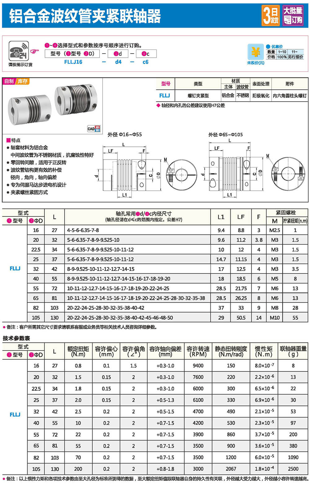 聯(lián)軸器是連接2個不同的旋轉(zhuǎn)體(電機軸,滾珠絲杠等),并以傳遞扭矩為目的的零件。通過吸收旋轉(zhuǎn)體間發(fā)生的軸心偏差(偏心.偏角.軸向振幅)減輕組裝調(diào)整的難度。并在發(fā)生意外過負載時,聯(lián)軸器首先損壞、解除旋轉(zhuǎn)體之間的連接,以保護昂貴的動力部及裝置整體。