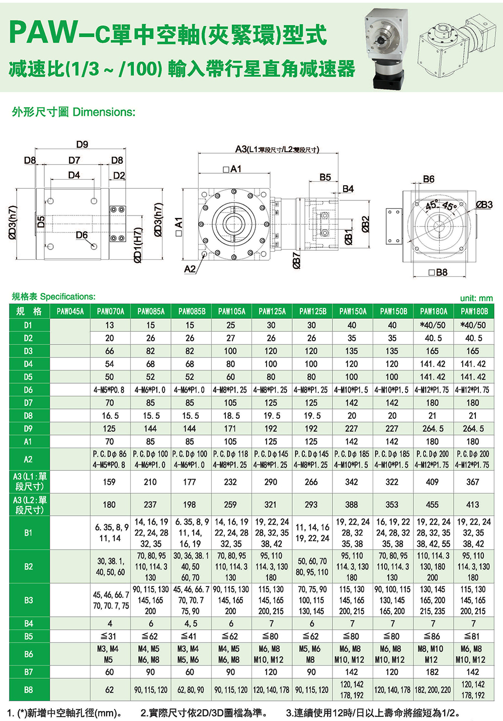 PAW-C單中空軸(夾緊環(huán))型式 輸入帶行星直角減速器