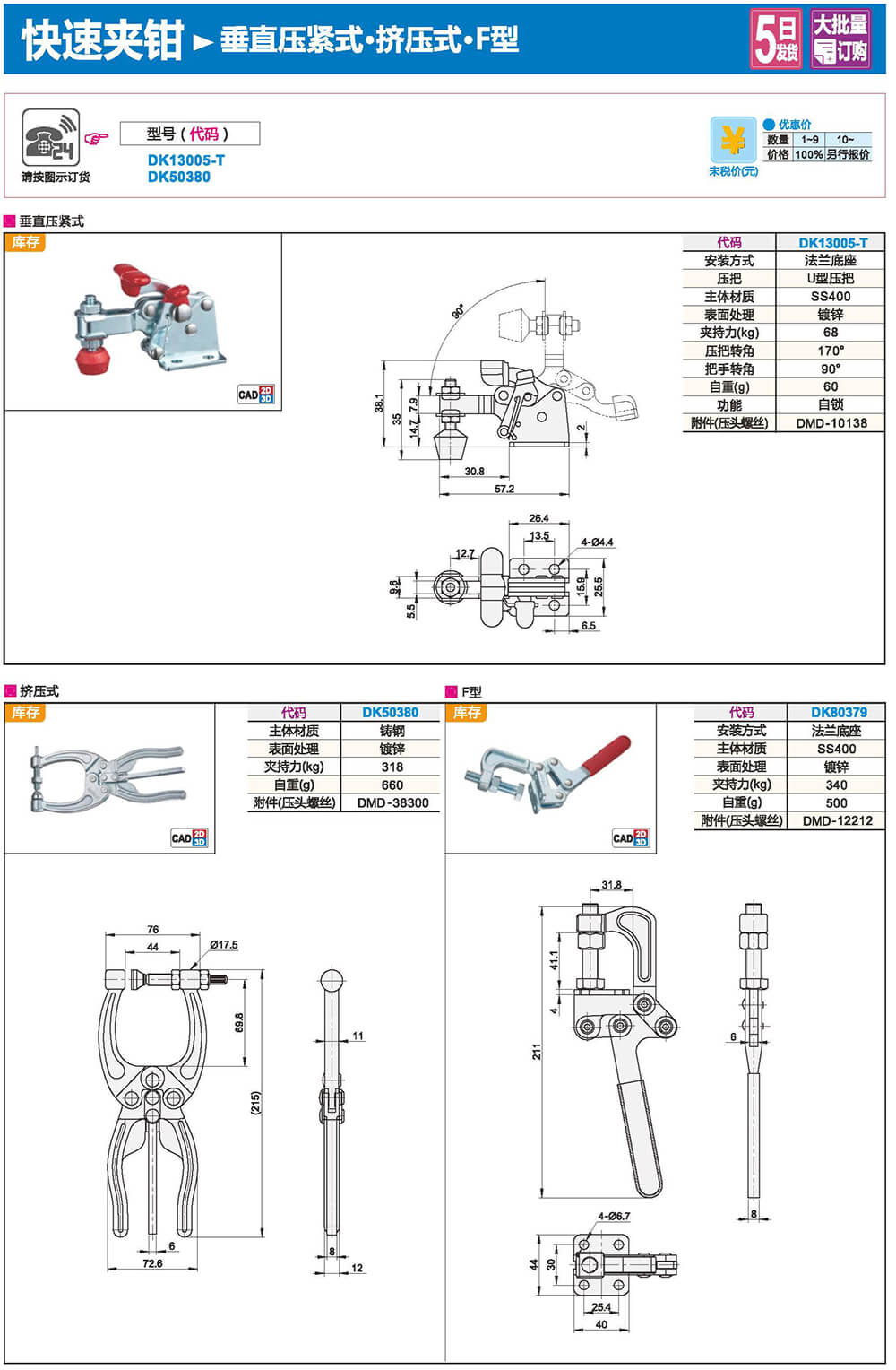 廣泛用于工業(yè)生產(chǎn)中的焊裝治具、機加治具、裝配治具、檢驗治具、機具和各種機圈的鎖定零部件。服務汽車制造業(yè)、機車制造業(yè)、電子及電器產(chǎn)品制造業(yè)、電子設備及電器設備制造業(yè)、家電產(chǎn)品及應用設備制造業(yè)、機床設備制造業(yè)、家具制造業(yè)、各種輕工專機設備制造業(yè)、起重設備及物流設備制造業(yè)、食品及醫(yī)藥設備制造業(yè)、發(fā)動機及發(fā)動機零部件產(chǎn)品制造業(yè)和專業(yè)設備制造業(yè)、電力設備制造業(yè)、通用零部件產(chǎn)品(如閥門、水泵、槽、簡、箱、蓋等)制造業(yè)、橡塑設備及化工設備制造業(yè)等。