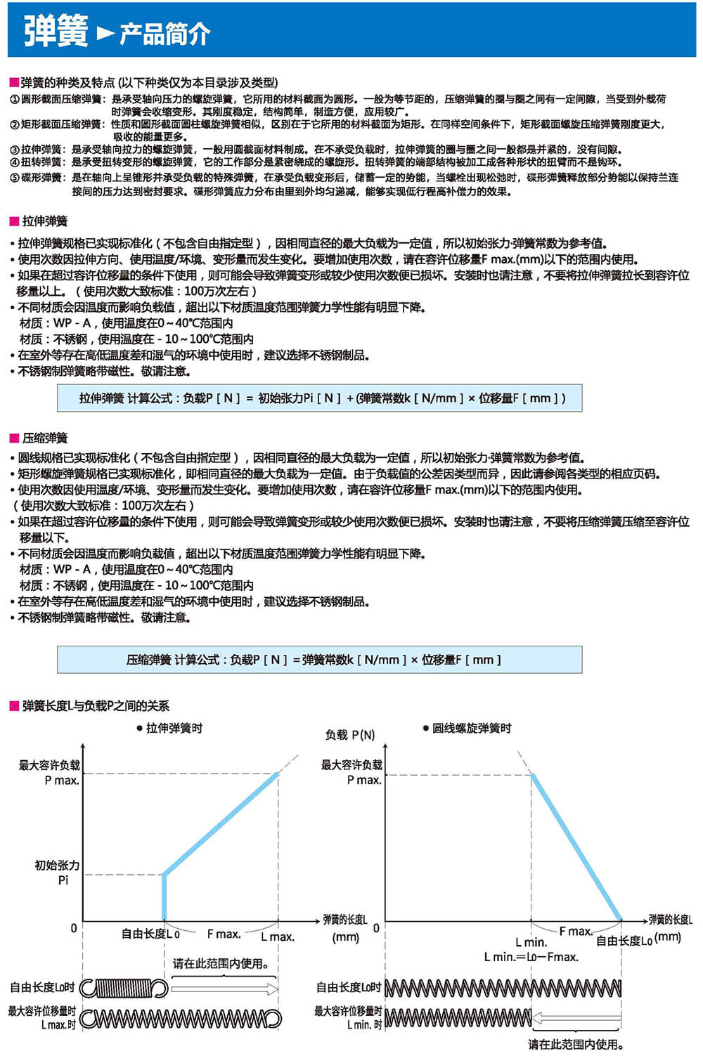 2.矩形截面壓縮彈簧:性質(zhì)和圓形截面圓柱螺旋彈簧相似,區(qū)別在于它所用的材料截面為矩形。在同樣空間條件下,矩形截面螺旋壓縮彈簧剛度更大,吸收的能量更多。