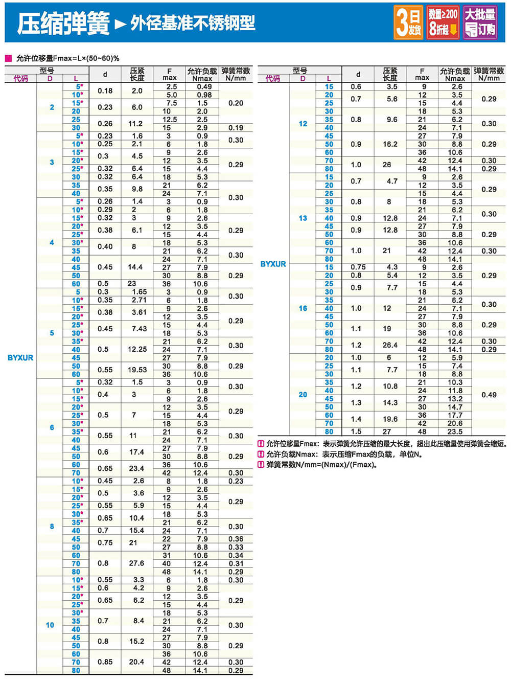 2.矩形截面壓縮彈簧:性質(zhì)和圓形截面圓柱螺旋彈簧相似,區(qū)別在于它所用的材料截面為矩形。在同樣空間條件下,矩形截面螺旋壓縮彈簧剛度更大,吸收的能量更多。