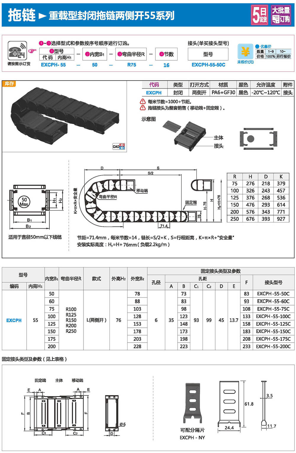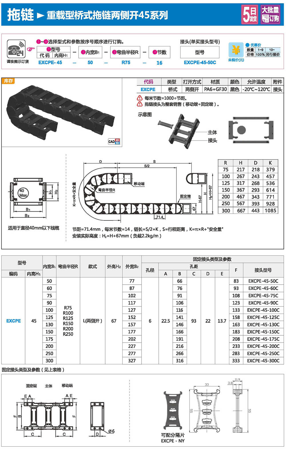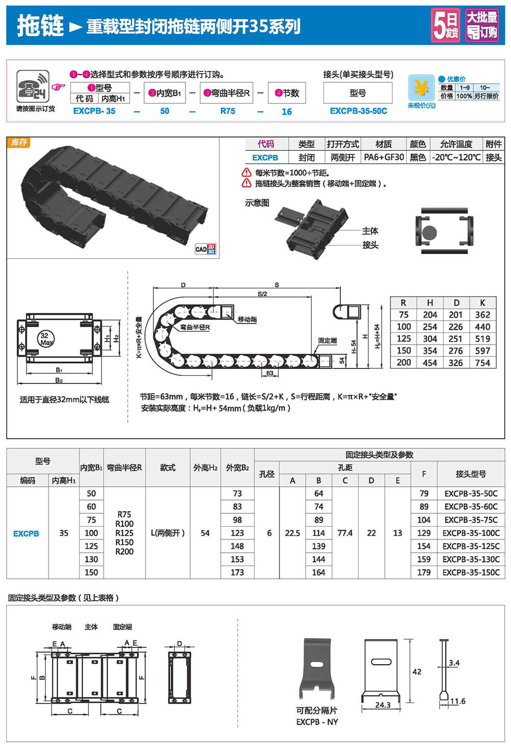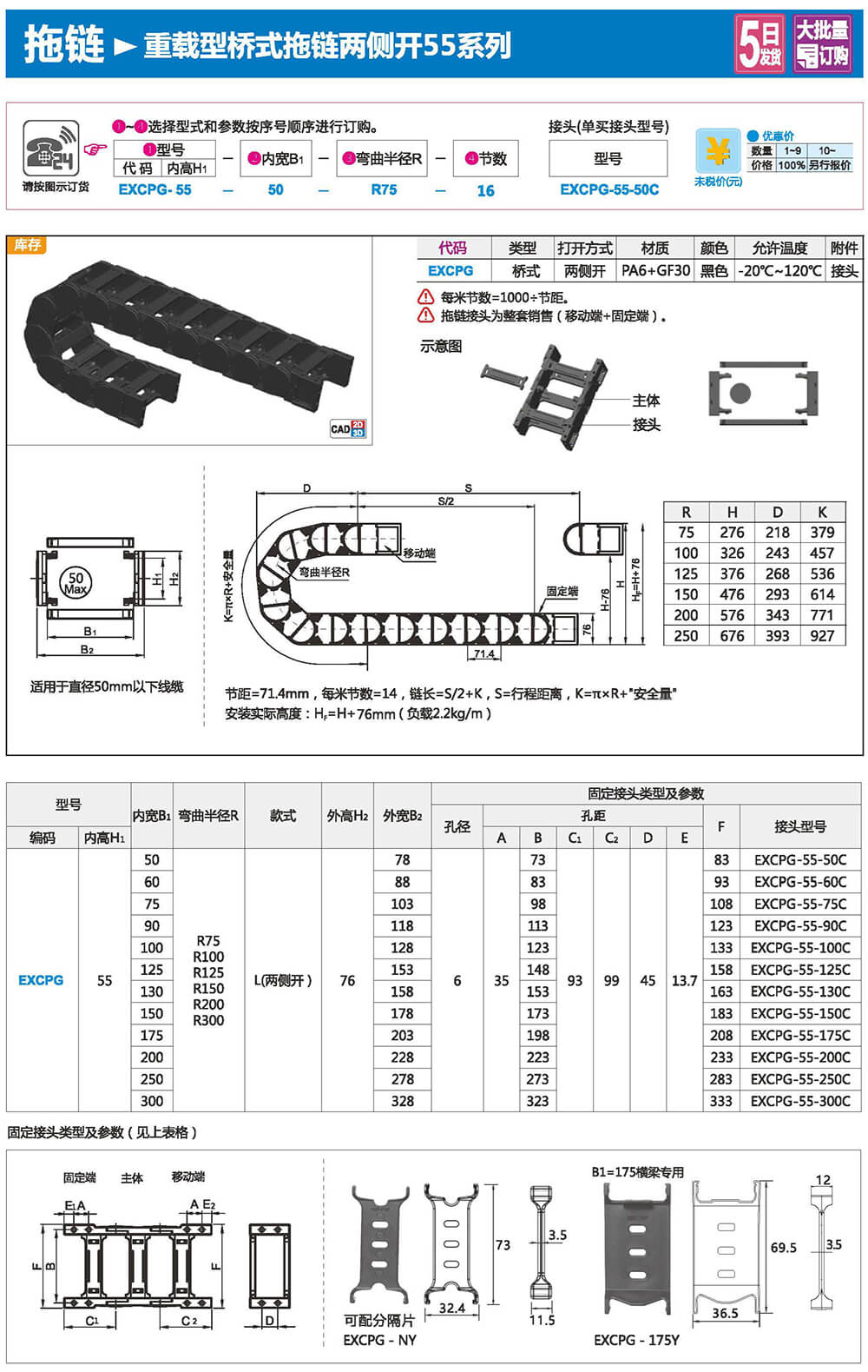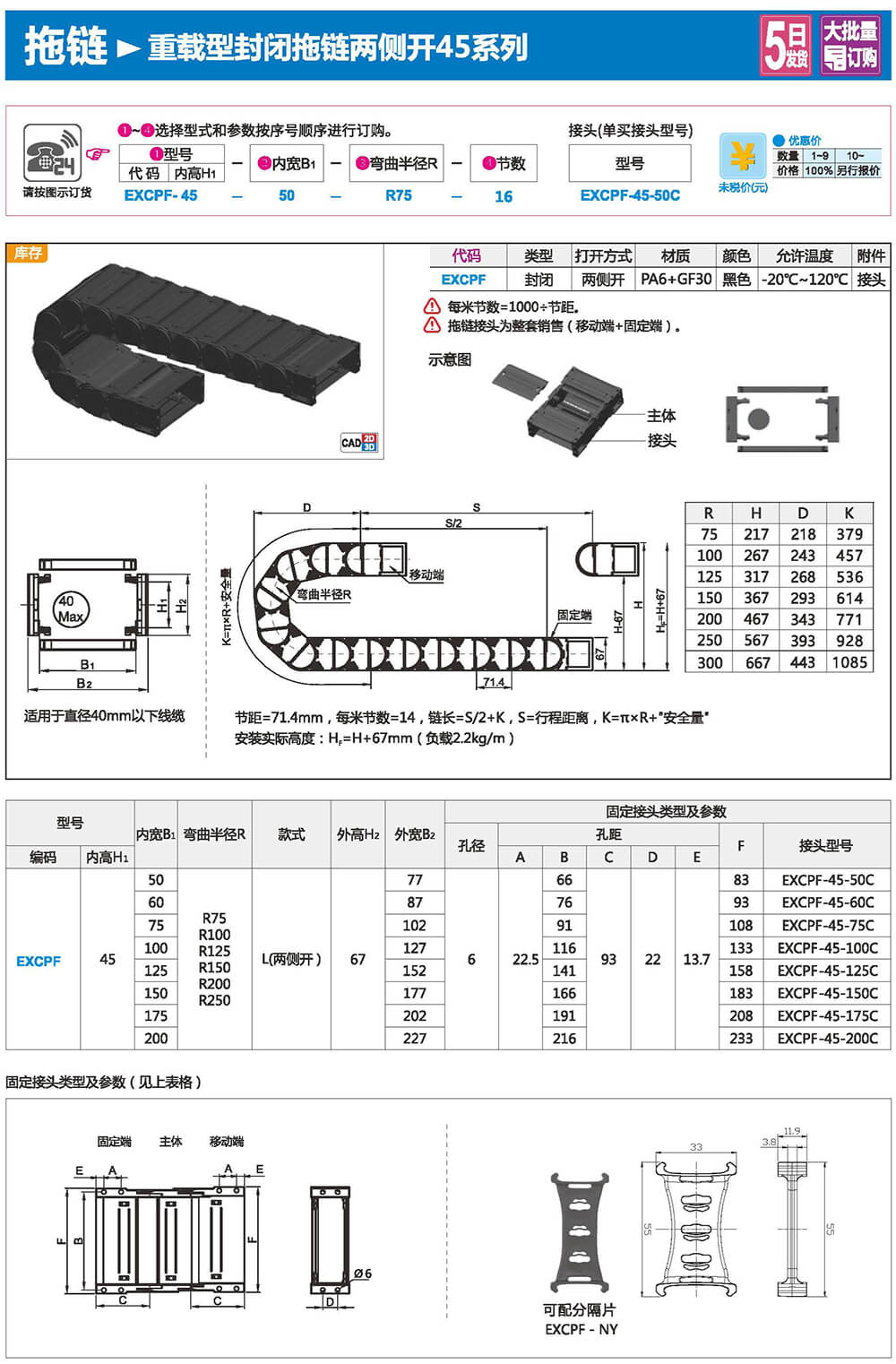 適合于使用在往復運動的場合,能夠對內(nèi)置的電纜、油管、氣管、水管等起到牽引和保護作用,拖鏈每節(jié)都能打開,便于安裝和維修。運動時噪音低、耐磨、可高速運動。拖鏈已被廣泛應用于數(shù)控機床.電子設備、石材機械、玻璃機械、門窗機械、注塑機、機械手、起重運輸設備、自動化倉庫等。