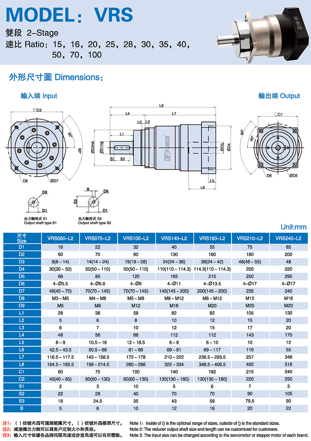 多樣化:輸出軸種類多樣化,有單出力軸型、雙出力軸型、中空軸型、中空法蘭型、中空軸錐形緊迫性、螺桿直線型、螺牙直線型。