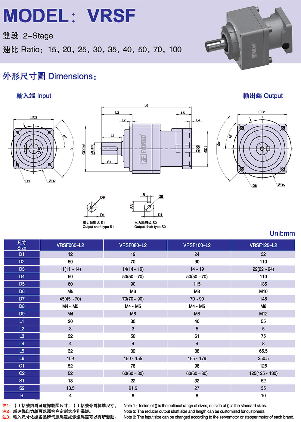 減速比:單段1:3~1:10雙段:1:12~12:100