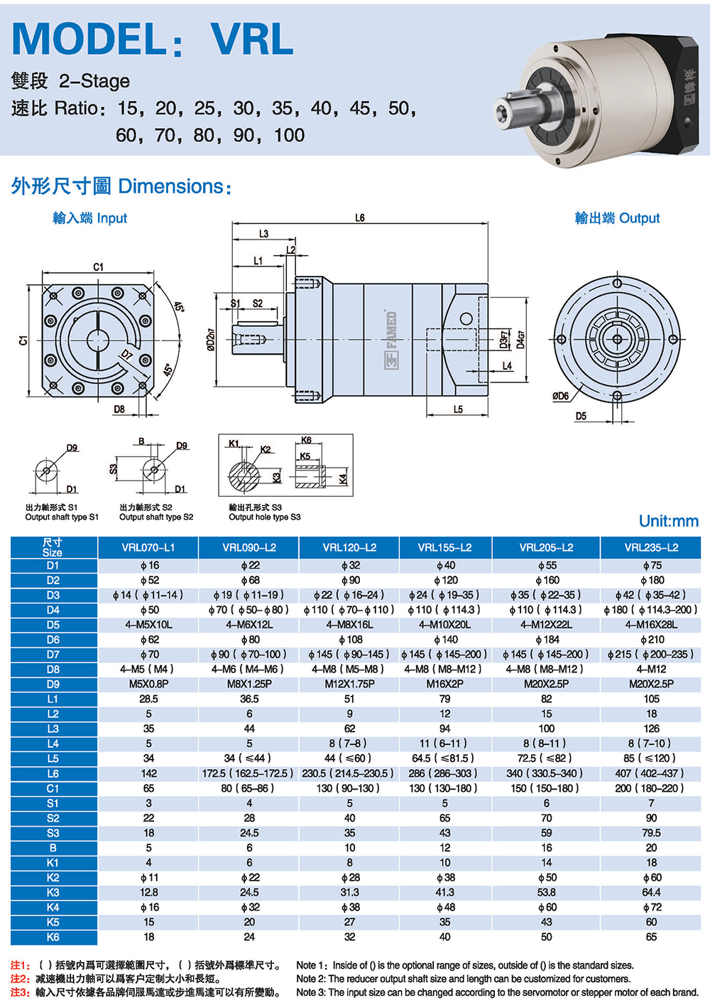 多樣化:輸出軸種類多樣化,有單出力軸型、雙出力軸型、中空軸型、中空法蘭型、中空軸錐形緊迫性、螺桿直線型、螺牙直線型。