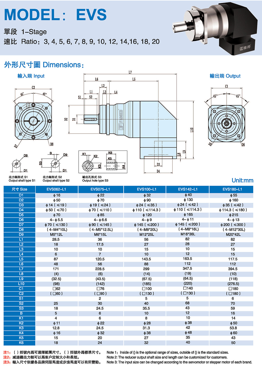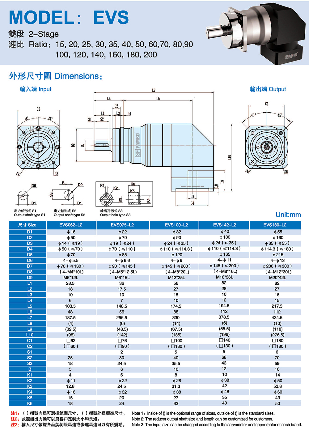 多樣化:輸出軸種類多樣化,有單出力軸型、雙出力軸型、中空軸型、中空法蘭型、中空軸錐形緊迫性、螺桿直線型、螺牙直線型。