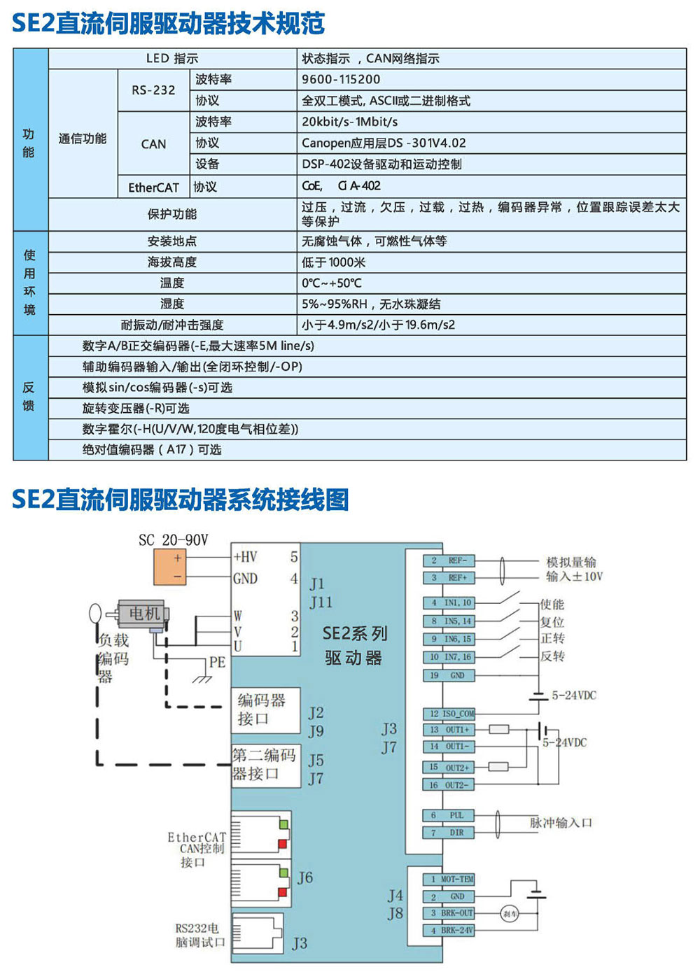 ◆CAN2.0局域總線(xiàn),兼容CANopen DS 402 ,波特率高1MHz ;