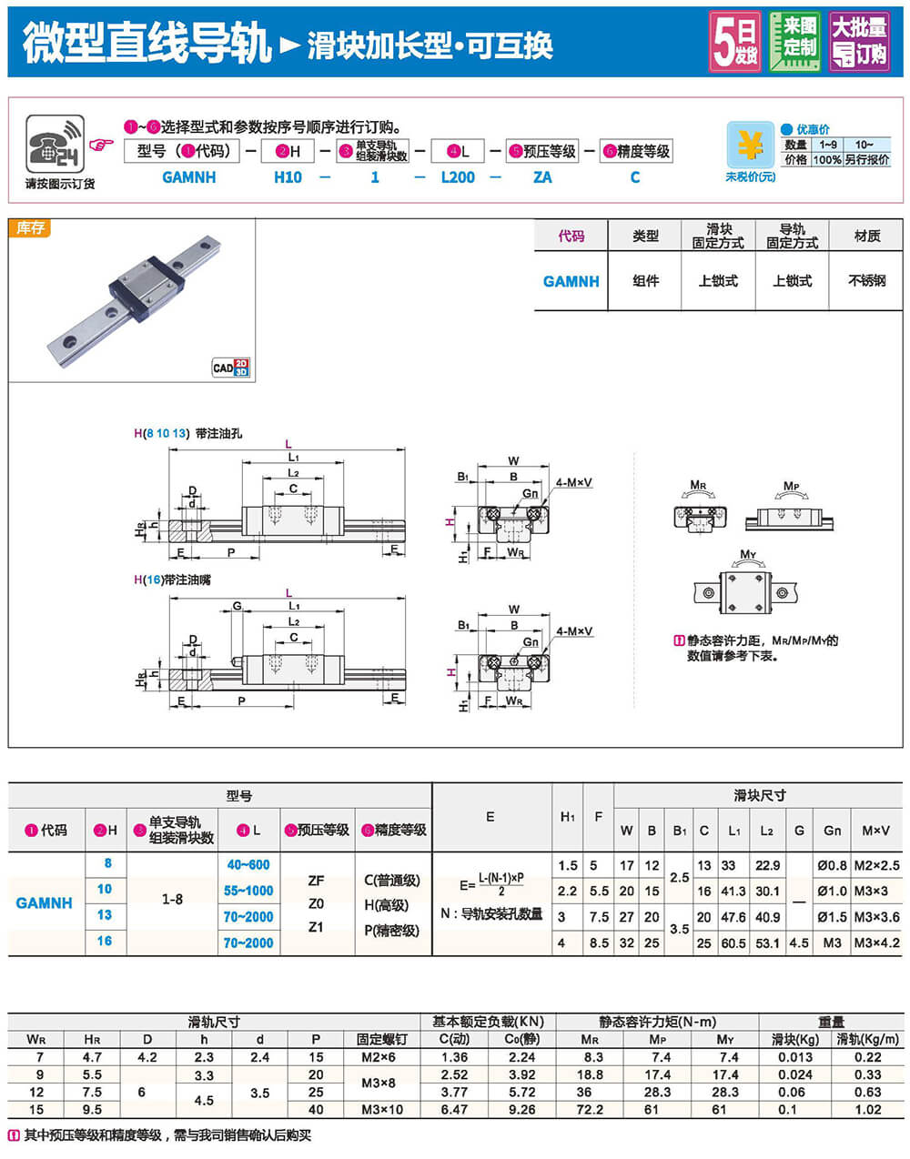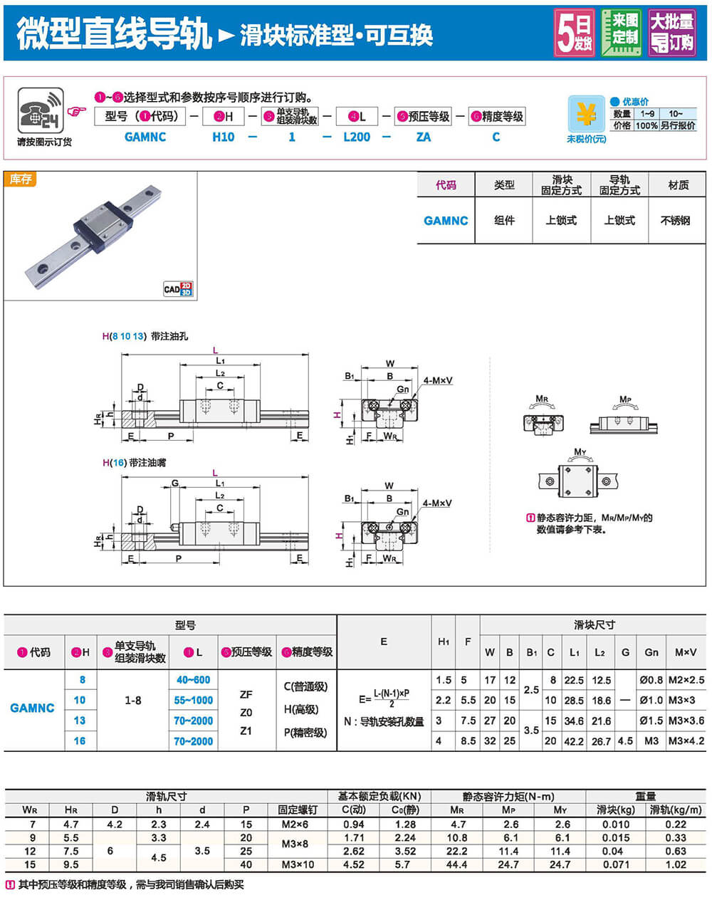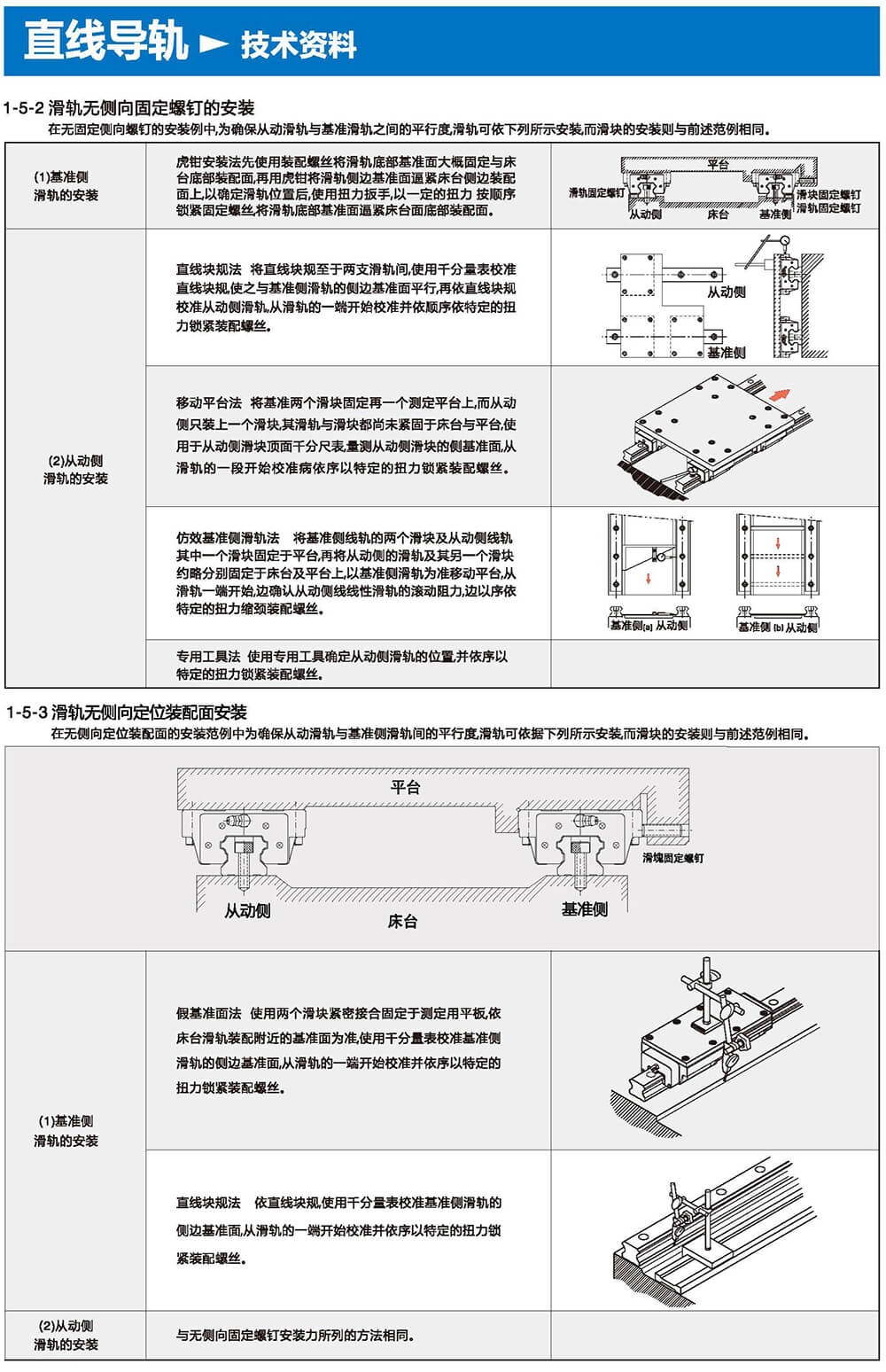直線導(dǎo)軌由鋼珠在滑塊與滑軌之間作無限滾動循環(huán)負(fù)載平臺能沿著滑軌輕易地以高精度做線性運動。與傳統(tǒng)的滑動導(dǎo)引相比較滾動引導(dǎo)的摩擦系數(shù)可降低至1/50,由于啟動的摩擦力大大減少,相對的較少無效運動發(fā)生故而能輕易達(dá)到μum級進給及定位。在加上滑塊與滑軌的束制單元設(shè)計,使得線性導(dǎo)軌可同時承受上下左右等各個方向的負(fù)荷上述陳列特點并非傳統(tǒng)滑動導(dǎo)引所能比擬因此機臺若能配合滾珠螺桿,使用線性導(dǎo)軌作導(dǎo)引必能大幅提高設(shè)備精度與機械效能。