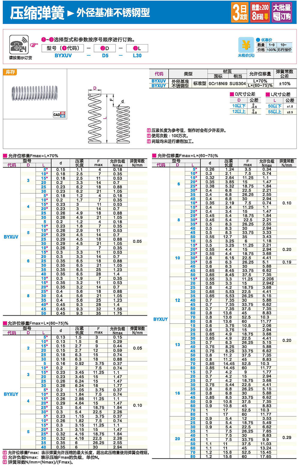 1.圓形截面壓縮彈簧:是承受軸向壓力的螺旋彈簧,它所用的材料截面為圓形。一般為等節(jié)距的,壓縮彈簧的圈與圈之間有一定間隙,當(dāng)受到外載荷時(shí)彈簧會(huì)收縮變形。其剛度穩(wěn)定,結(jié)構(gòu)簡(jiǎn)單,制造方便,應(yīng)用較廣。